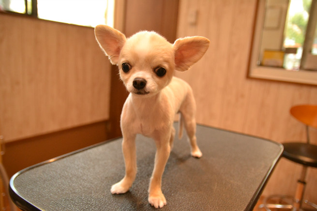 今日も全身をすっきりとカットしてスムースちゃんの様になったロングコートチワワの小太郎くんです♬ おひげもカットしているので体を短くするだけより、さらにすっきり感がUPします(^-^) とっても大人しい性格でお預かりからお迎えまでじーっとしてくれていました♡